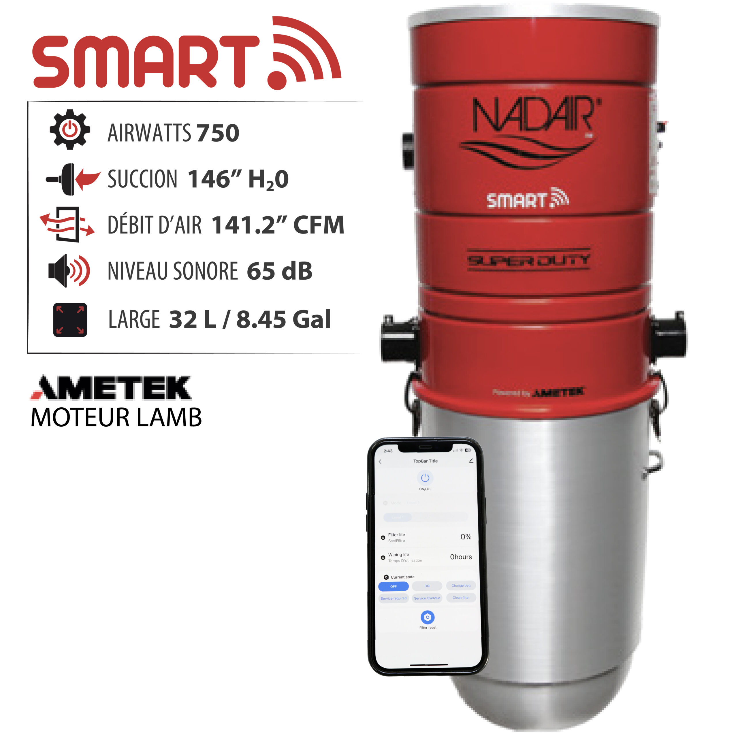 ASPIRATEUR CENTRAL INTELLIGENT – EXCLUSIF À NADAIR :– Démarrage / arrêt depuis un appareil intelligent et par commande vocale : Idéal pour les boyaux rétractables ou les anciens systèmes